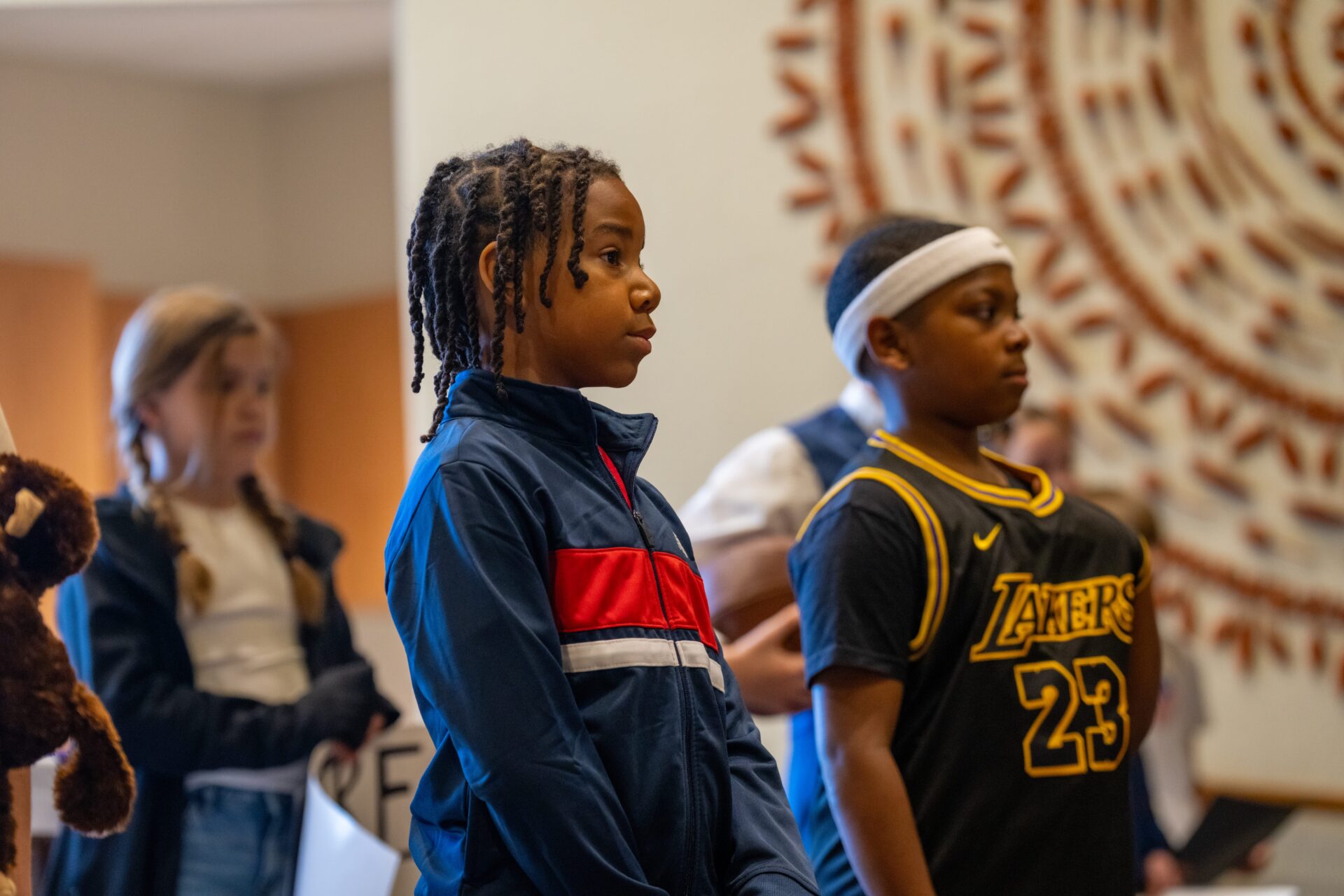 Karter is more of a OKC Thunder fan, but wanted to pick a sports figure, and he delivered a self-assured speech as pro basketball player Steph Curry.
